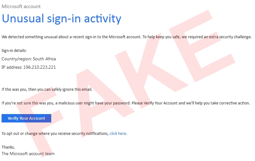 To verify my identity i used my gmail account (at which the original email was received) microsoft account unusual sign-in activity. Reasons why you received an unusual sign in activity email · signing in from a new device that was never used to sign in to your account before.